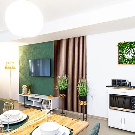 Ortsmitte区に位置するこのホテルは器具でいっぱいの台所と1室のベッドル-ムを備えています.